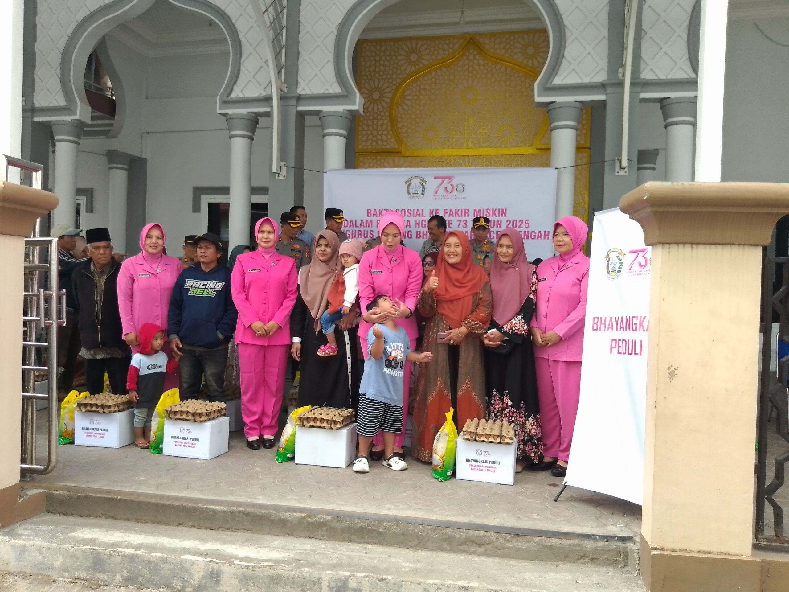 Kegiatan yang berlangsung di halaman Masjid Ar-Rahman Kampung Simpang 4 tersebut dipimpin langsung oleh Ketua Bhayangkari Cabang Aceh Tengah, Ny. Vifa Taufiq, didampingi oleh Kapolres Aceh Tengah, AKBP Muhammad Taufiq, S.I.K., M.H. serta jajaran pengurus Bhayangkari dan personel Polres Aceh Tengah.