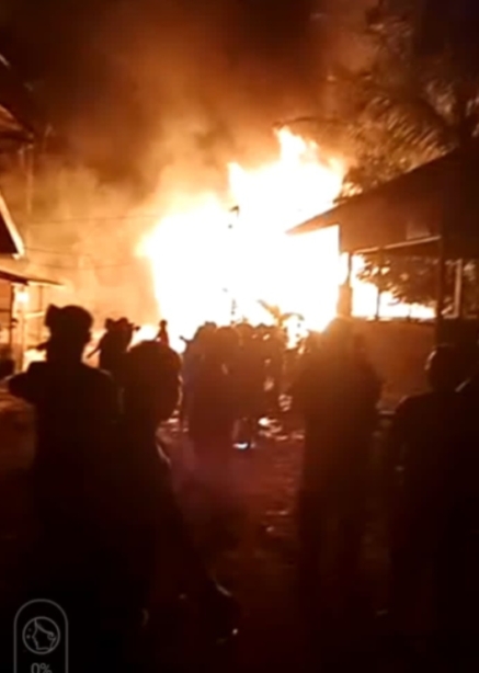 Kobaran api menghanguskan empat rumah warga yang terjadi di kampung Delung Sekinel kecamatan Linge kabupaten Aceh tengah,Selasa 04/11/2025,