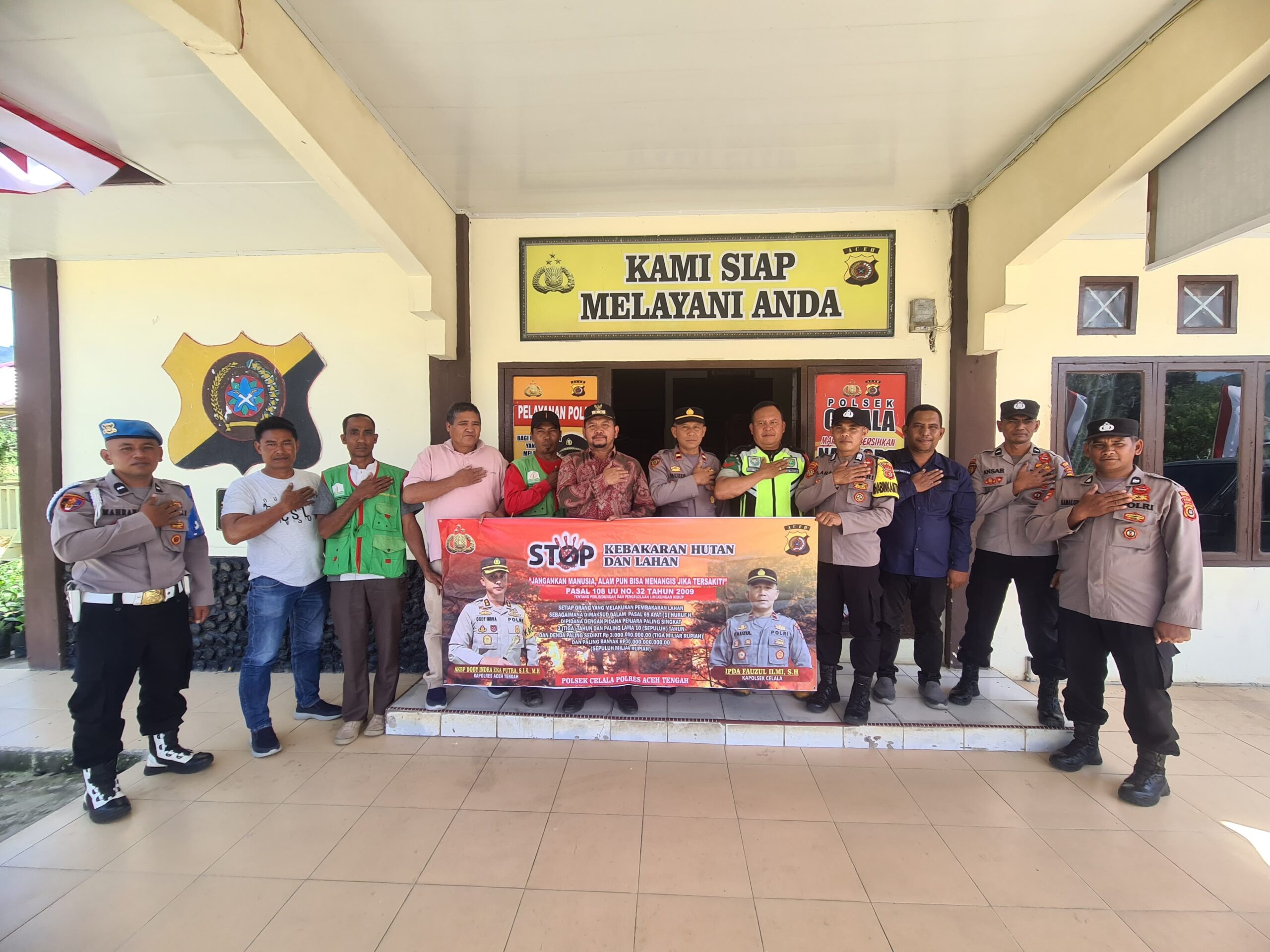 Menghadapi potensi kebakaran hutan dan lahan (Karhutla) di musim kemarau, jajaran Polsek Celala, Polres Aceh Tengah bersama unsur Forkopimcam Kecamatan Celala terus menggencarkan upaya pencegahan melalui sosialisasi langsung ke masyarakat dan pemasangan spanduk imbauan, Jumat (4/7/2025) sekira pukul 14.30 WIB.