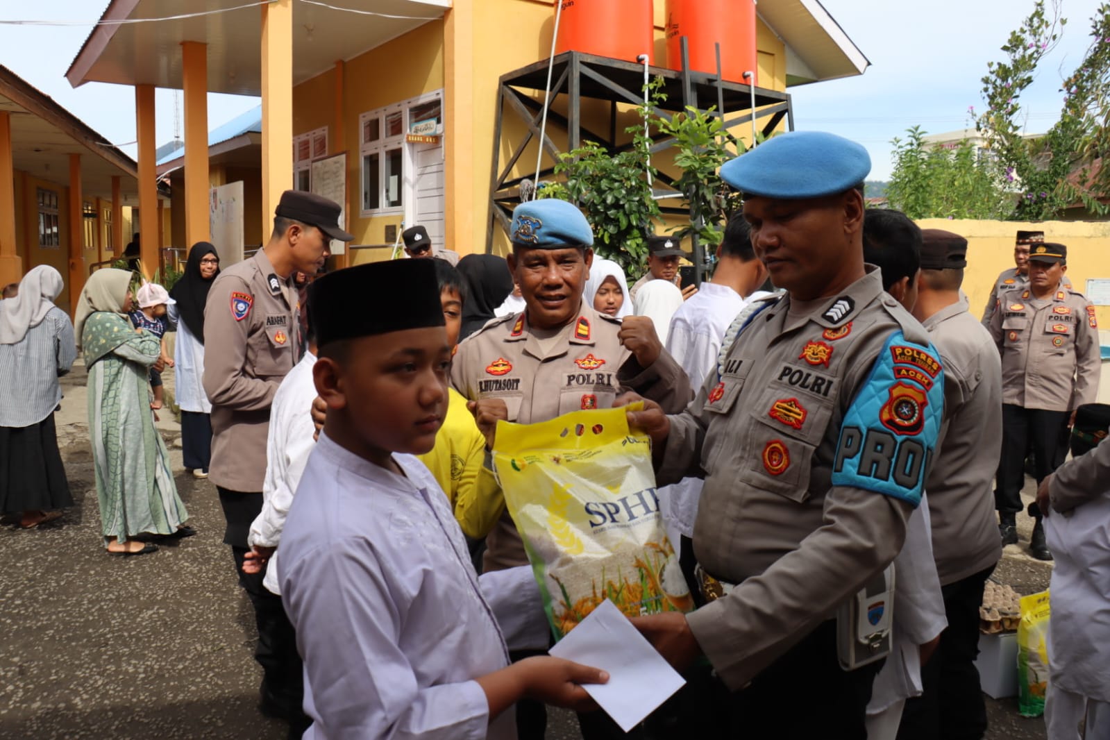 Dalam kegiatan penuh makna ini, sebanyak 20 paket sembako dan tali asih diserahkan langsung oleh Kapolres Aceh Tengah AKBP Muhamad Taufiq, S.I.K., M.H., yang diwakili oleh Kasat Binmas AKP Saudin Situmorang. Penyerahan turut didampingi oleh Kasat Samapta, Kasi Propam, Wakapolsek Kota Takengon IPDA Rahmat Akbar, serta sejumlah personel Polres dan Polsek setempat.