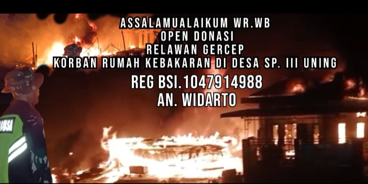 pasalnya warga telah dikejutkan dengan korbaran api yang mengahanguskan tiga Unit rumah milik Mujianto warga kampung Simpang tiga uning tersebut