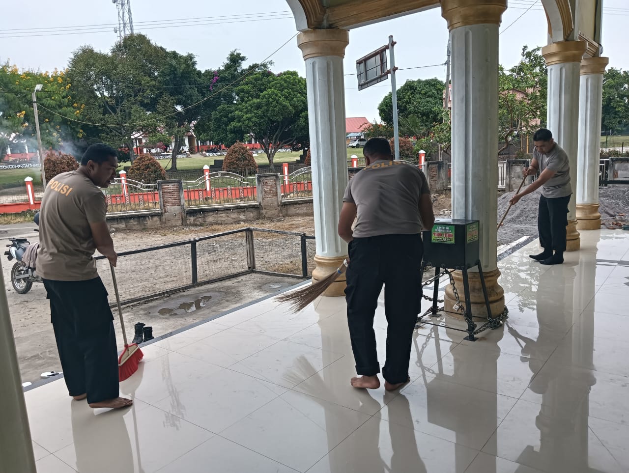 Personel kepolisian bersama TNI, aparatur kampung, dan masyarakat setempat bahu-membahu membersihkan lingkungan serta masjid-masjid. Kegiatan ini menjadi wujud kepedulian bersama dalam menjaga kebersihan lingkungan sekaligus mempererat silaturahmi antara aparat dengan warga.