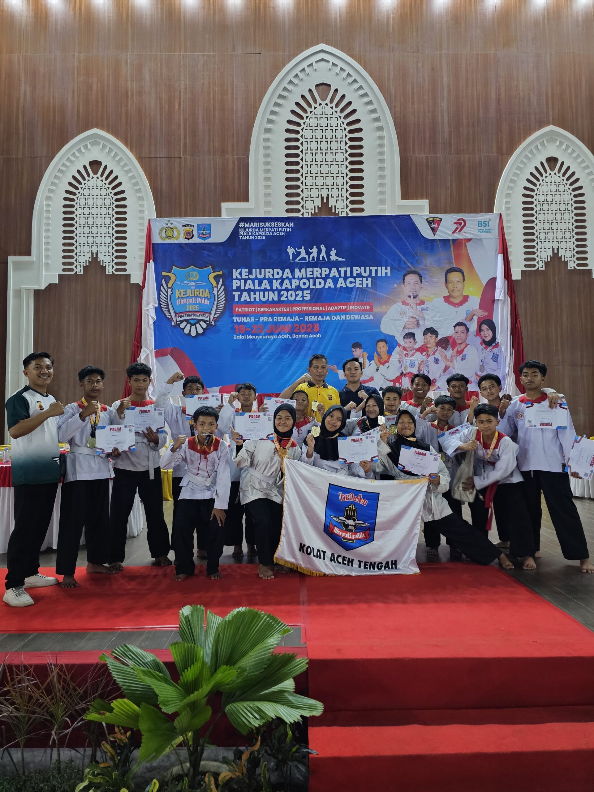 Prestasi gemilang kembali ditorehkan Kontingen Pencak Silat (Konlat) Kabupaten Aceh Tengah yang tampil sebagai perwakilan Polres Aceh Tengah dalam ajang Kejuaraan Daerah (Kejurda) Silat Merpati Putih Kapolda Cup Tahun 2025, dalam rangka memperingati Hari Bhayangkara ke-79.