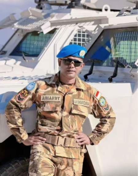 Sertu Ariandi Putra terbaik dari dataran tinggi Tanoh Gayo,Babinsa Koramil 05/Linge kecamatan Linge kabupaten Aceh tengah provinsi Aceh,yang bergabung dalam Satgas Yonmek 23 S,main body Yonif 114 SM,Unifil Lebanon,
