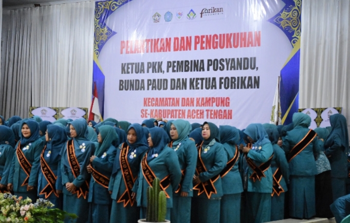 Pemerintah Kabupaten Aceh Tengah melaksanakan pelantikan dan pengukuhan Ketua TP PKK, Pembina Posyandu, Bunda PAUD, serta Ketua FORIKAN tingkat kecamatan dan kampung, yang berlangsung di Gedung Olahraga dan Seni (GOS), Selasa, (14/04/2026).