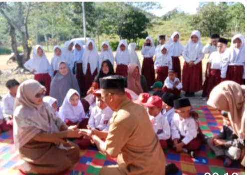 Acara penyerahan murid ku Guru ini di laksanakan di lapangan SDN 16 linge.