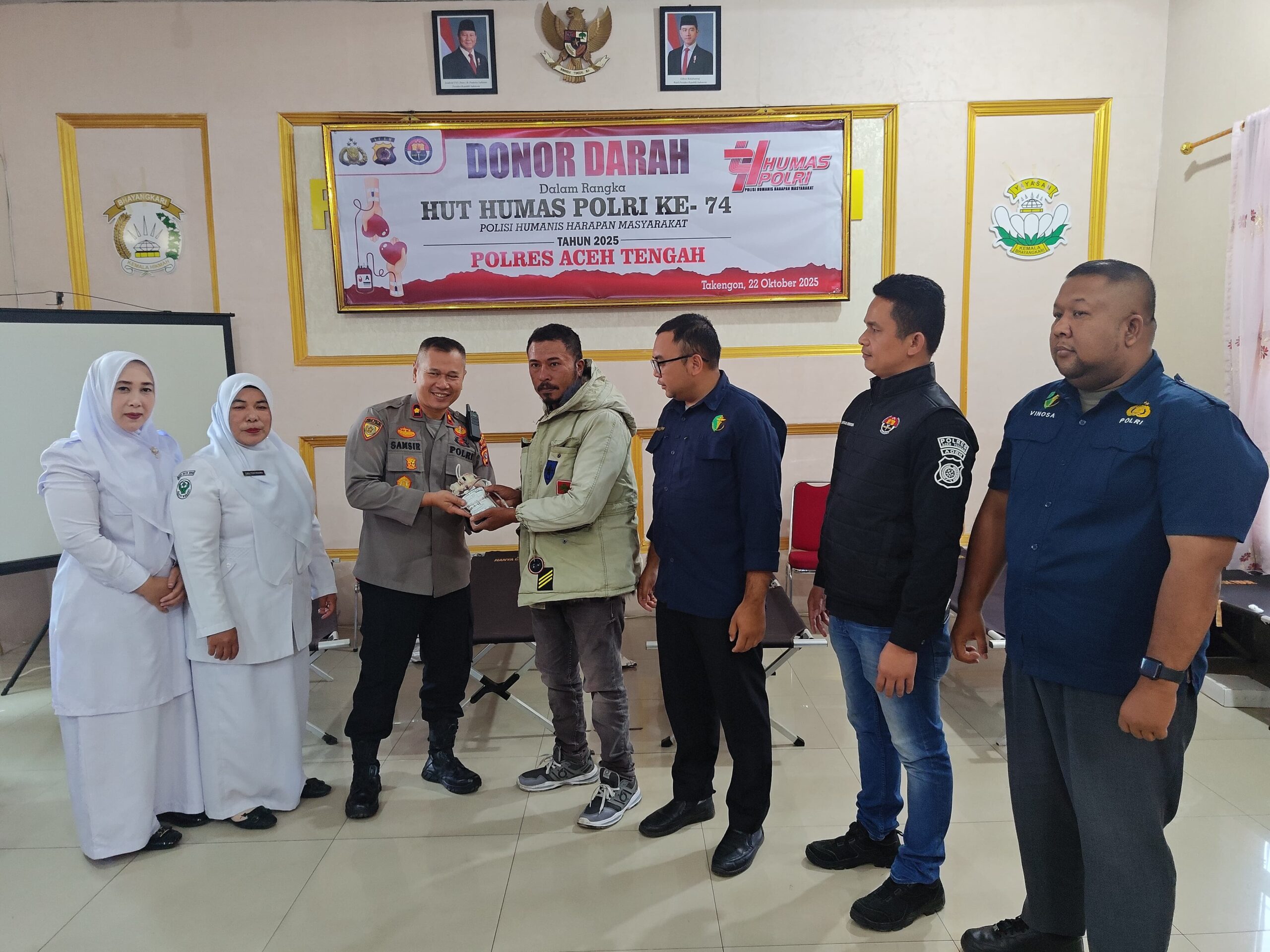 Polres Aceh Tengah Gelar Donor Darah, Wujud Kepedulian Sambut Hari Jadi Humas Polri ke-74