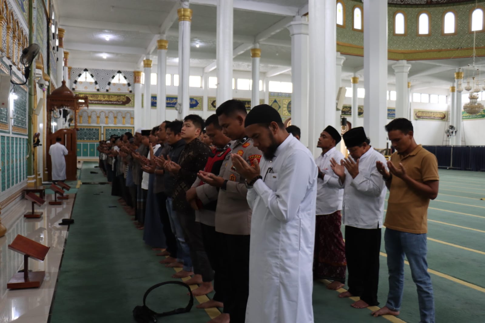 Ibadah shalat gaib dilaksanakan di Masjid Ruhama Takengon, Jumat (29/8/2025) seusai shalat Ashar, dipimpin oleh Tgk. Annas Nurdin. Kapolres Aceh Tengah AKBP Muhamad Taufiq, S.I.K., M.H., hadir bersama jajaran pejabat utama, personel Polres, dan masyarakat setempat.