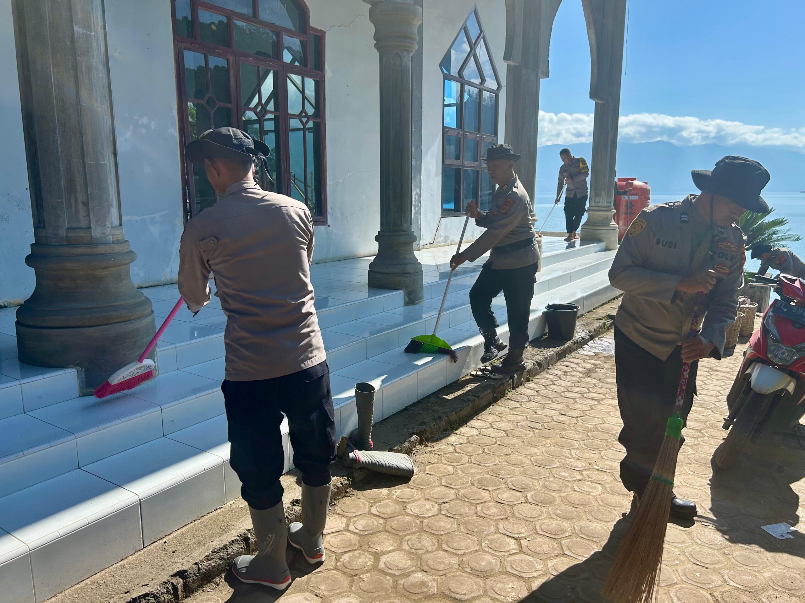 Selanjutnya, kegiatan serupa juga dilaksanakan oleh personel Polsek Lut Tawar di Masjid Al Amanah, Kampung Pedemun One-One, Kecamatan Lut Tawar. Kegiatan ini dipimpin langsung oleh Kapolsek Lut Tawar AKP Ismail Muda Daulay dan difokuskan pada pembersihan pasca bencana banjir bandang dan tanah longsor.