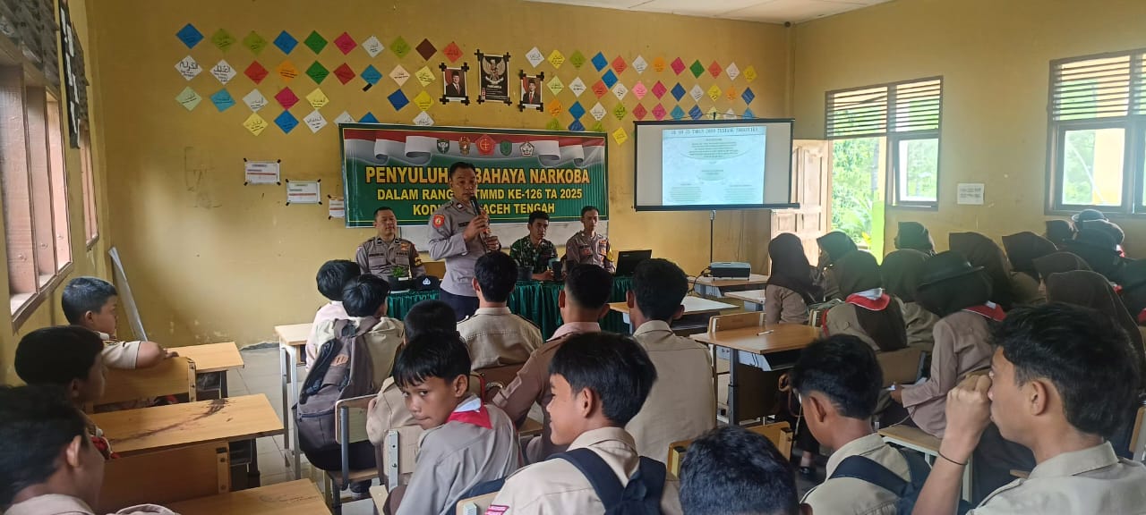 Takengon, WartaGayo.com– Sebagai bagian dari kegiatan non fisik dalam program TNI Manunggal Membangun Desa (TMMD) ke-126 Tahun Anggaran 2025, Kodim 0106/Aceh Tengah menggelar penyuluhan tentang bahaya narkoba serta hukum dan keamanan ketertiban masyarakat (Kamtibmas) bagi para siswa-siswi SMA Negeri 18 Takengon, Kecamatan Linge, Kabupaten Aceh Tengah.20 Oktober 2025.