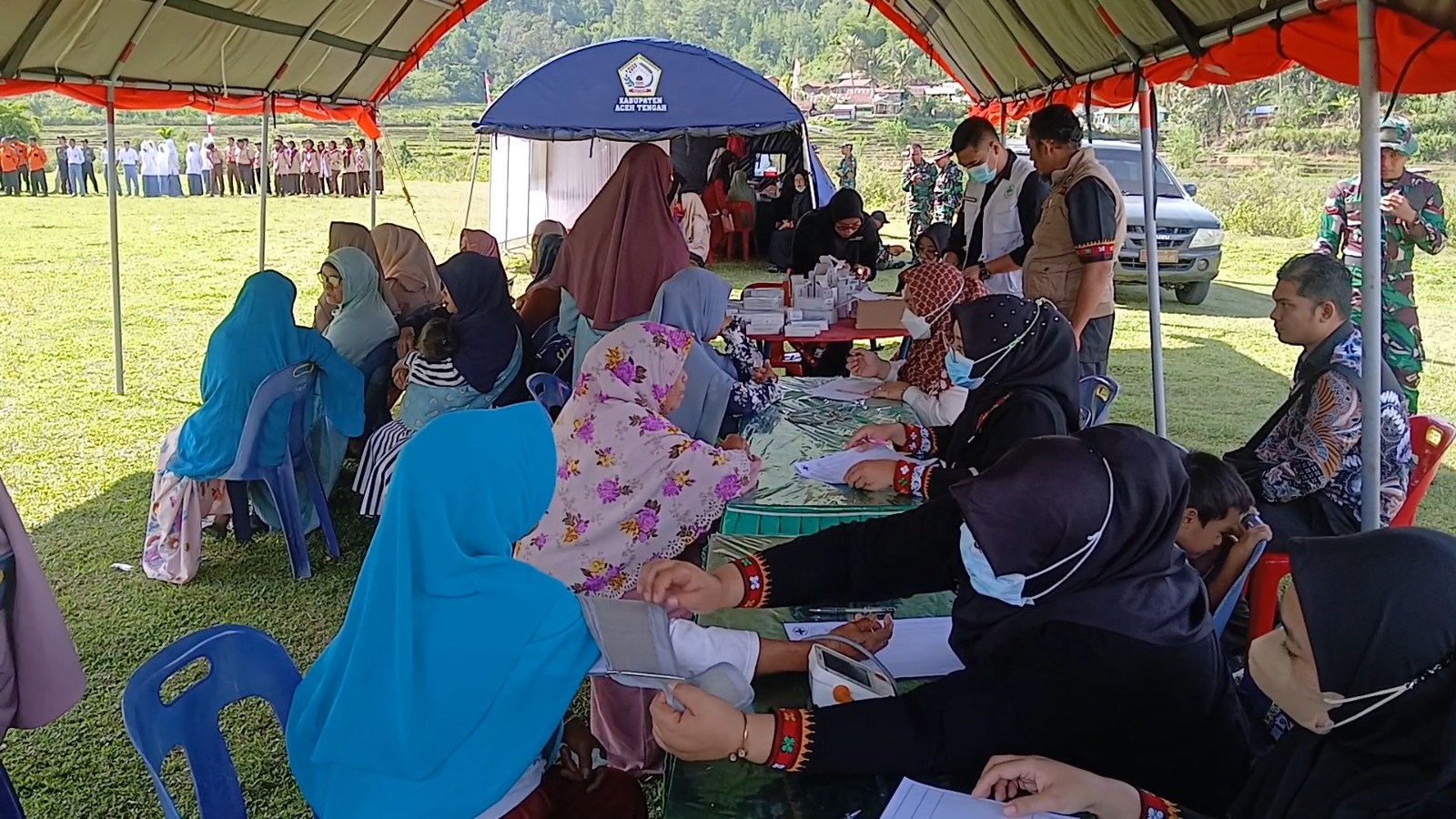 Sejak pagi, warga dari berbagai desa sekitar tampak antusias mendatangi lokasi penutupan TMMD di Desa Kute Riyem. Mereka memanfaatkan kesempatan untuk mendapatkan layanan kesehatan gratis yang disediakan oleh Satgas TMMD ke-126 Kodim 0106/Aceh Tengah.