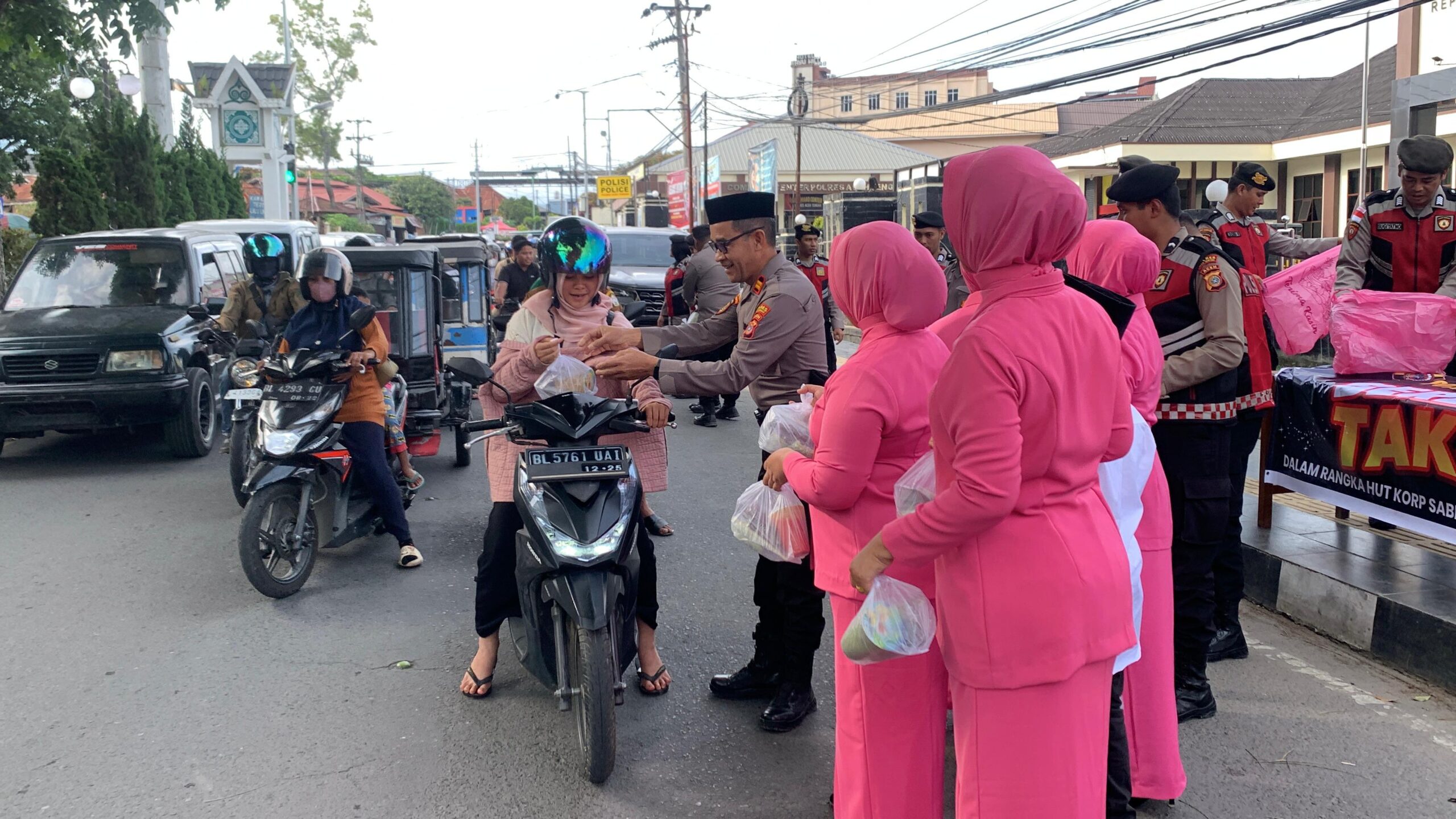 Pembagian takjil dilakukan kepada para pengguna jalan dan masyarakat yang melintas di sekitar Mapolres Aceh Tengah sebagai bentuk kepedulian sosial Polri kepada masyarakat, khususnya bagi mereka yang sedang menjalankan ibadah puasa di bulan Ramadan.