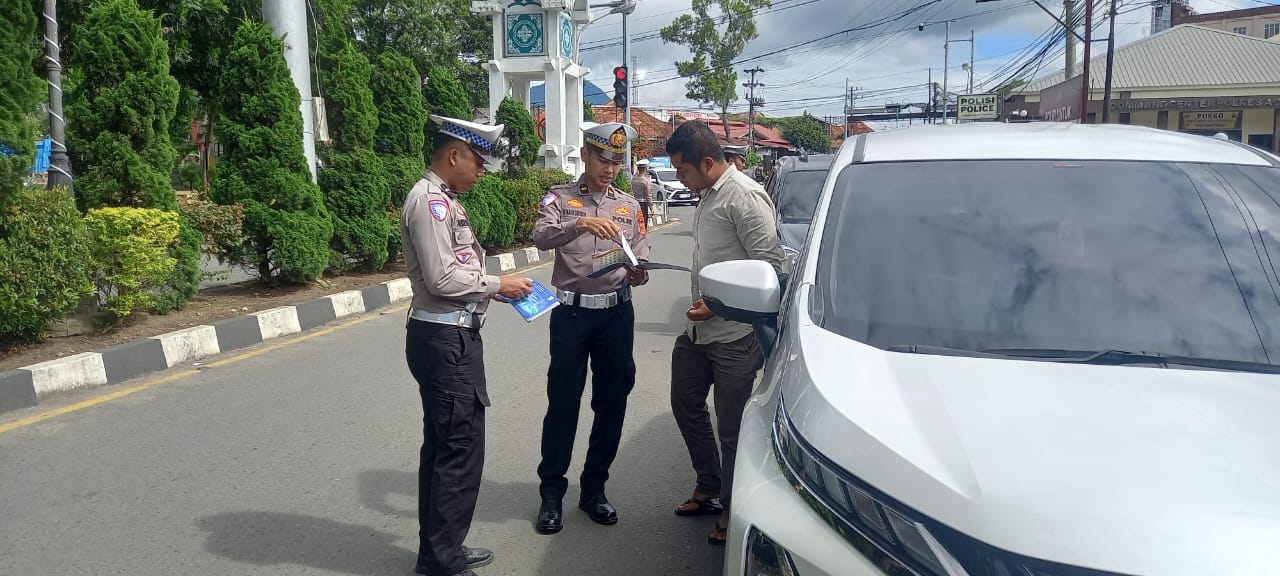 Kepolisian Resor (Polres) Aceh Tengah, Polda Aceh, melalui Satlantas melaksanakan sosialisasi tertib berlalulintas kepada pengendara kendaraan bermotor disertai pembagian buku panduan dan stiker lalulintas, Selasa (6/5/25).