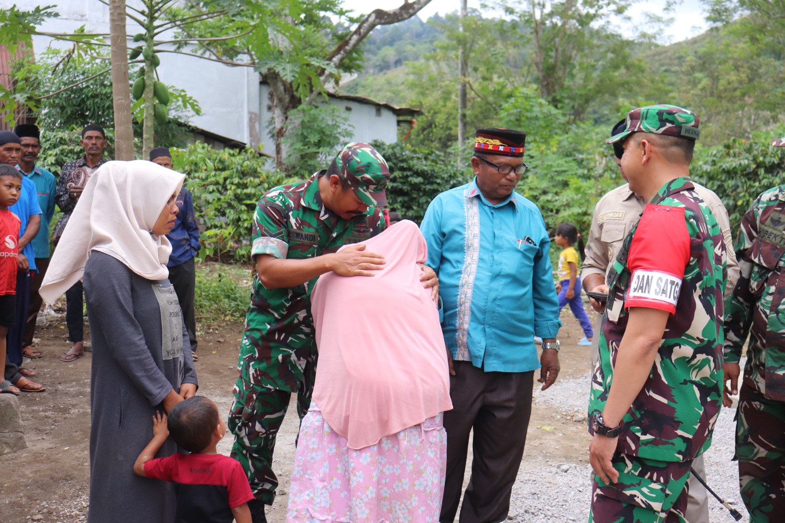 Dengan mata berkaca-kaca, Kasmawati berulang kali mengucapkan terima kasih. Ia tak kuasa berbicara panjang, hanya pelukan erat dan air mata yang mewakili segala rasa bahagia dan terharu yang ia rasakan. “Saya tidak tahu harus bilang apa lagi… hanya Allah yang bisa membalas kebaikan bapak-bapak TNI,” ucapnya lirih sambil menunduk dan menggenggam tangan Babinsa Riswandi.