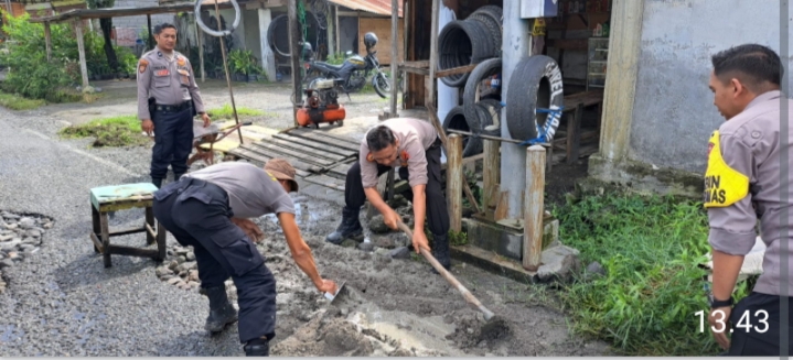 TNI-Polri di Aceh Tengah Gotong Royong Tambal Jalan Berlubang Dan Pembersihan Drainase